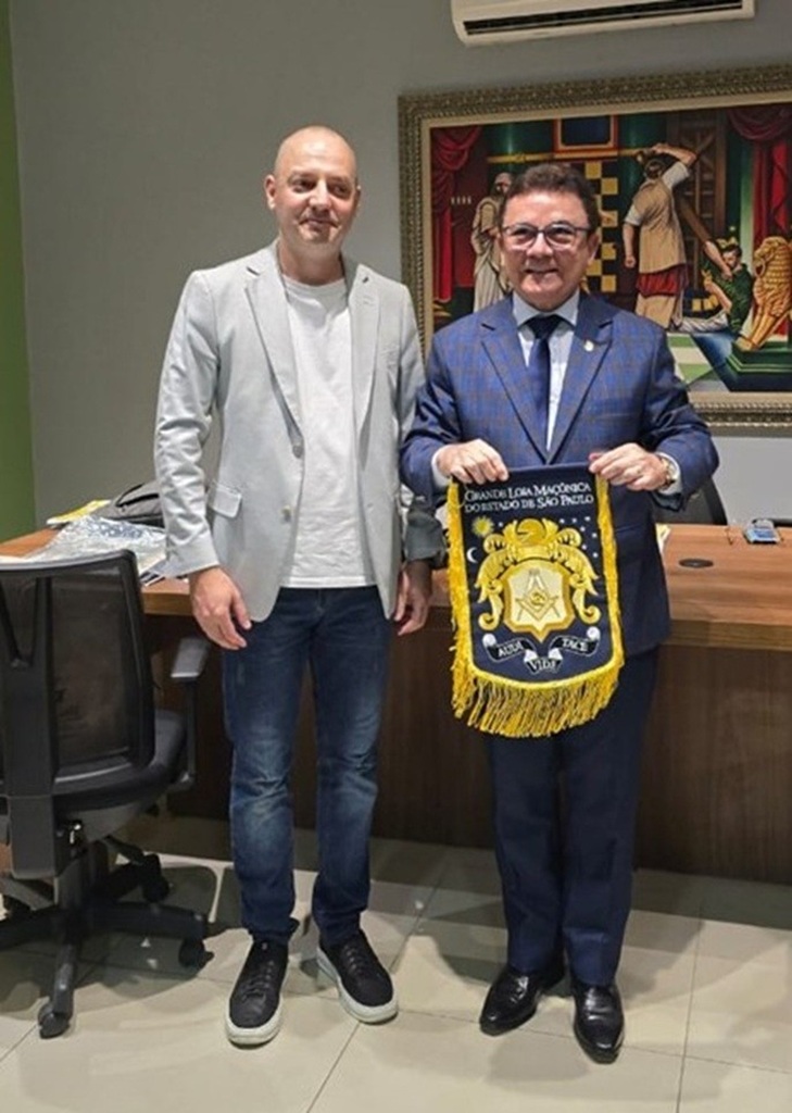 O irmão André Micheloto (à esquerda) e o Grão-Mestre João Carlos de Oliveira (GLMECE)